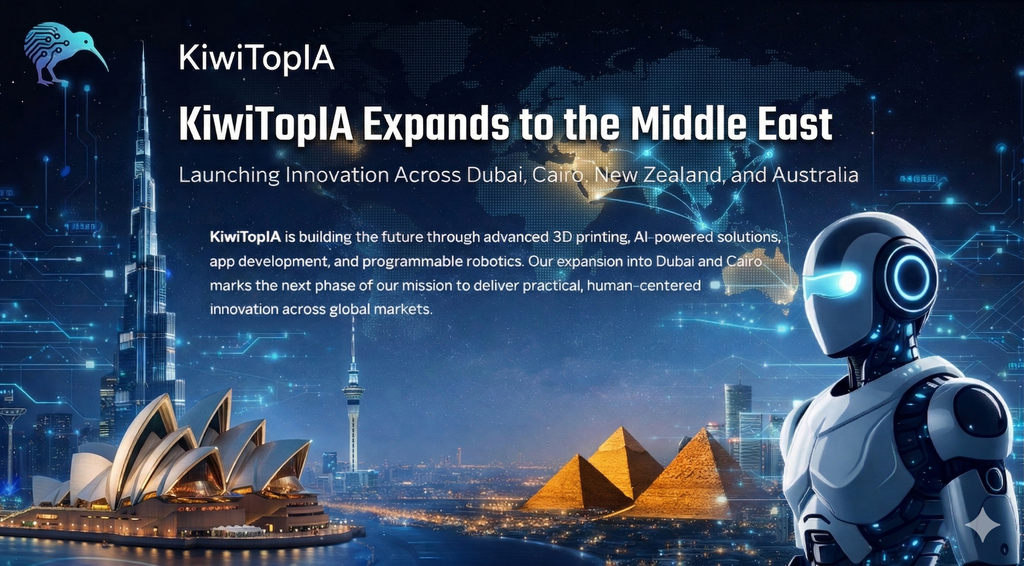 KiwiTopIA is extending its operations from New Zealand and Australia into Dubai and Cairo, bringing advanced 3D printing, AI solutions, app development, and programmable robotics to businesses, educators, and innovators across the region.